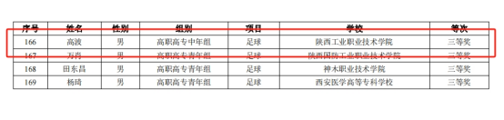 10月26日—27日,陕西省高校体育教师教学技能大赛在西安交通大学兴庆校区举行。本次赛事由陕西省教育厅主办,西安交大承办,是全省体育教师教学水平和技能展示的最高赛事。我校教师吕方荣获乒乓球项目一等奖,陶雨晴荣获健美操项目二等奖,张波、高波分别荣获健美操和足球项目三等奖,取得该项赛事成绩的新突破。